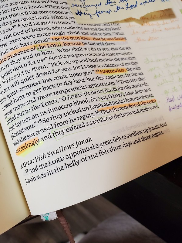 Let me think about this. Jonah figures he would be better off dead than to obey the Lord and preach in Nineveh. He did not seek the Lord in this decision, and he did not consider what might happen to the sailors whom he told to throw him overboard. He made decisions based on his own fears. I do wonder why he didn’t jump himself. Why did he need to be thrown by others? God ultimately used that decision to reveal Himself to the sailors, so they at least could be saved.