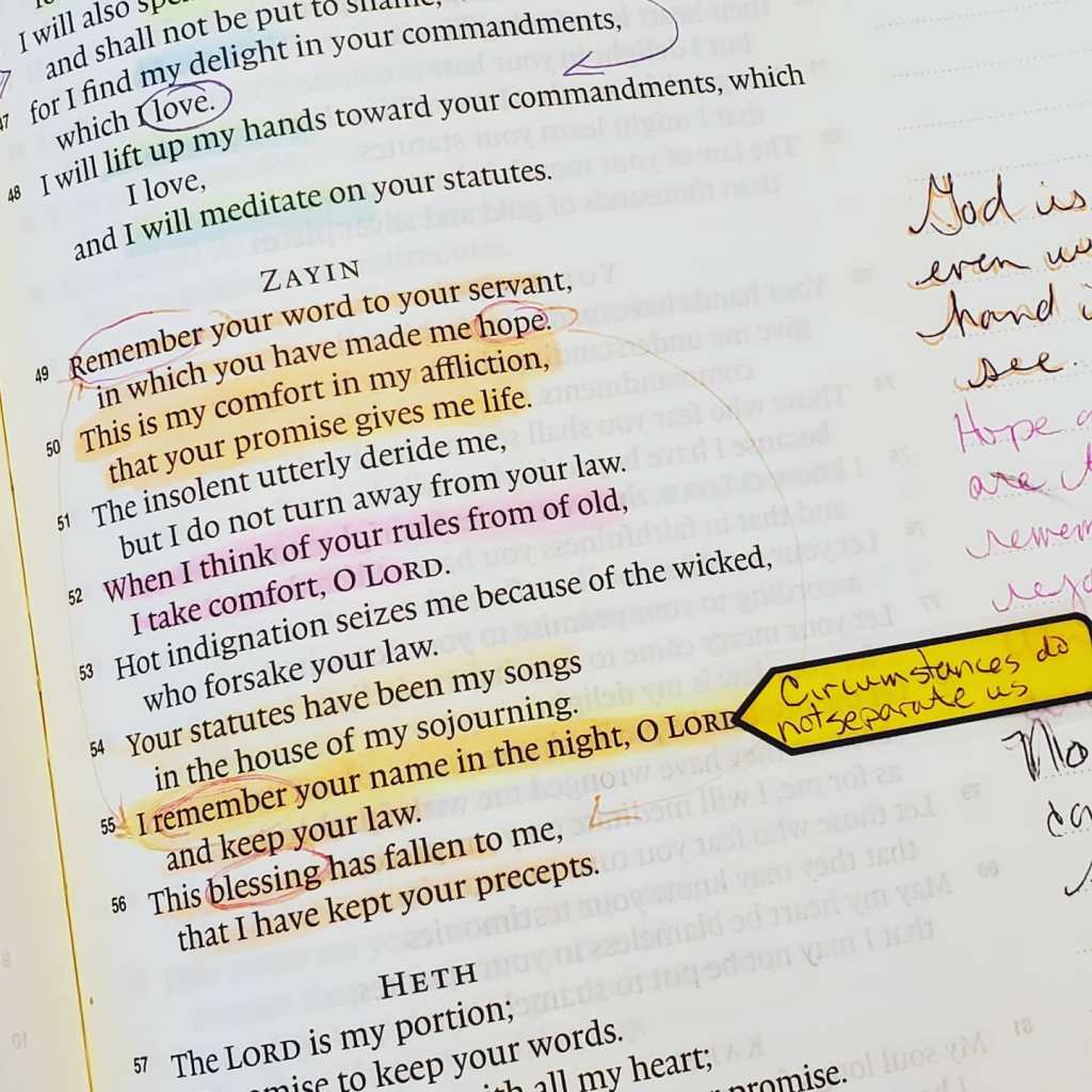 Hope and blessing (joy) are inextricably woven with focusing on the Word of the Father in hard times, uncertain times, and in pleasant times. No circumstance changes God. No wickedness or folly of humankind changes God. God’s unshakable promise gives life when we sing His statutes and keep His precepts. When our focus is right we are able to be kind in our words to each other. We can avoid being part of the uncertainty that induces chaos. We can keep our mouths shut when we should and we can avoid feeling insulted by others. Our source of validation is Jesus. We can be confident that He is the same no matter what is happening on earth. His Word is enough.