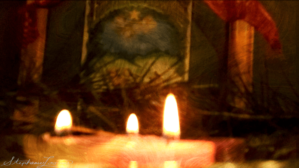 Often pink, the third candle represents Mary in many Orthodox traditions. Other traditions call it the candle for Joy. Either symbol works; Mary’s joy expressed in her Magnificat (Luke 1:46-55) sets the standard for how we should respond to God’s working in our lives, even when we don’t fully understand His ways.