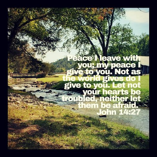 Peace I leave with you; my peace I give to you. Not as the world gives do I give to you. Let not your hearts be troubled, neither let them be afraid.